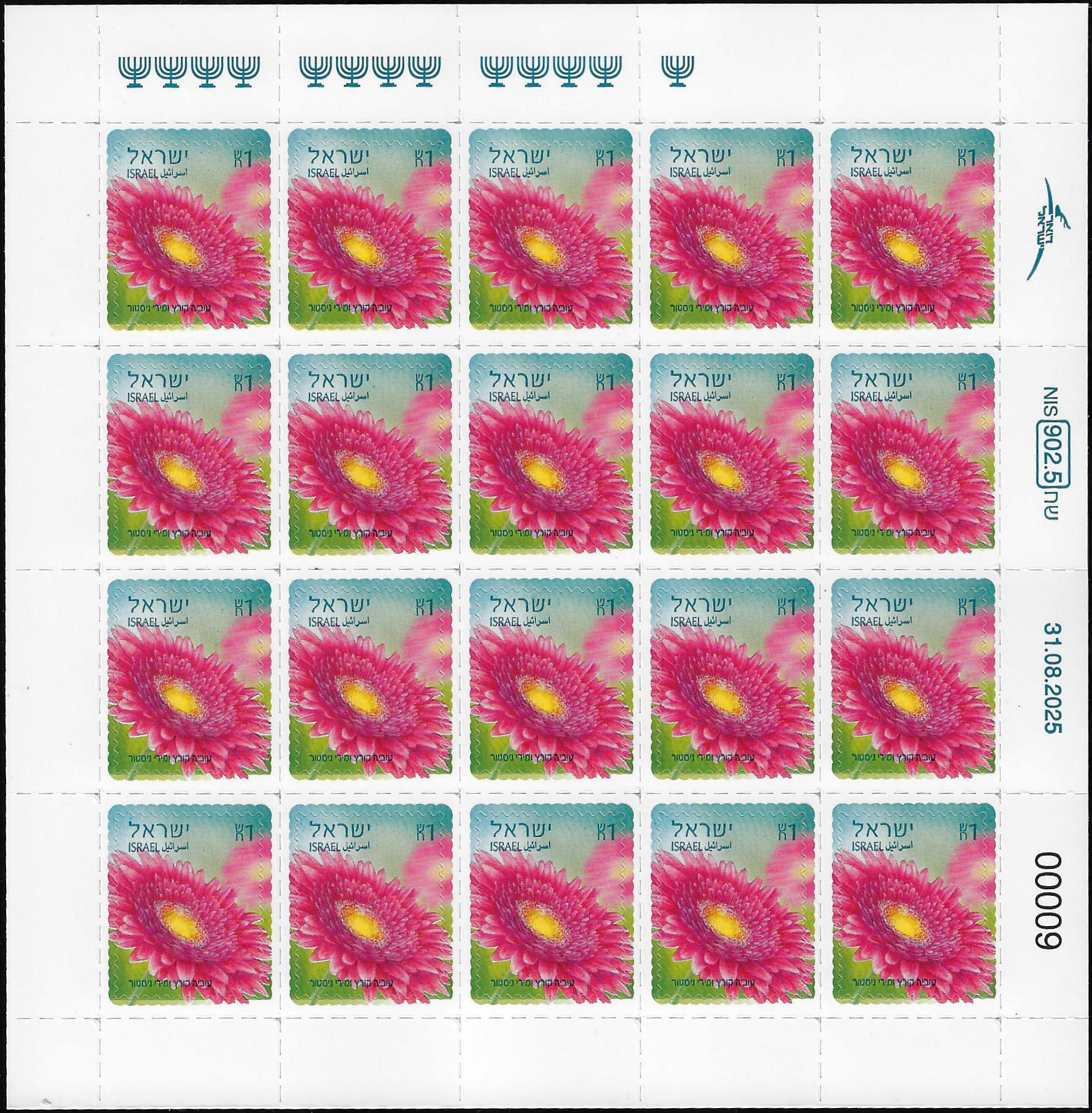 גיליון דביק - גרברה - 1 ש"ח