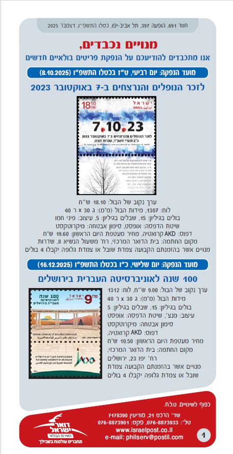 חזרה לדף חוזרים ומידעונים של השירות הבולאי