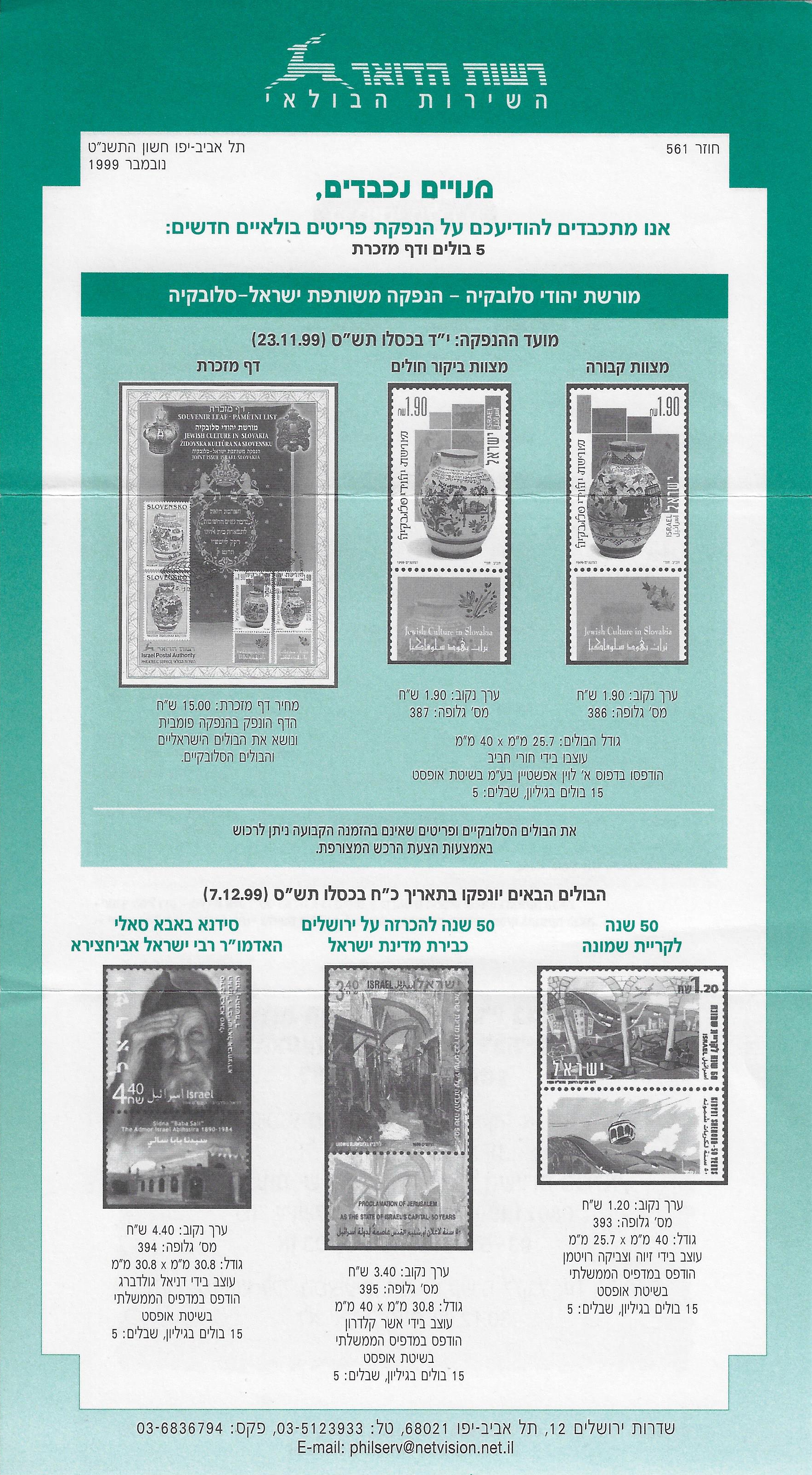 הנפקה משותפת 11.1999: ישראל - סלובקיה