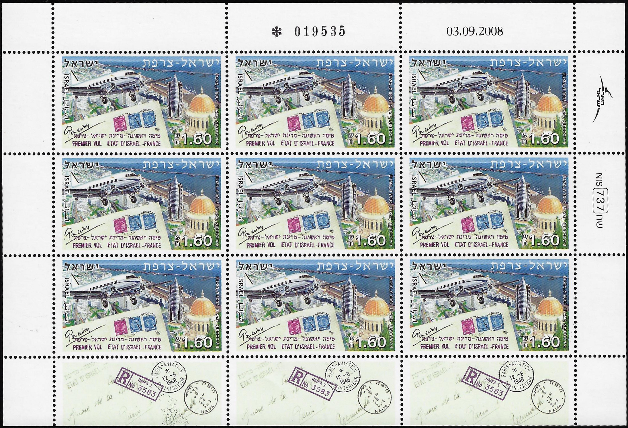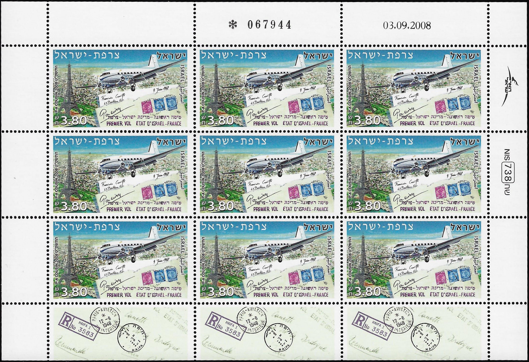06.11.2008 - הנפקה משותפת ישראל-צרפת - הטיסה מחיפה [ג:12.5, ר:18.5] (רגיל)