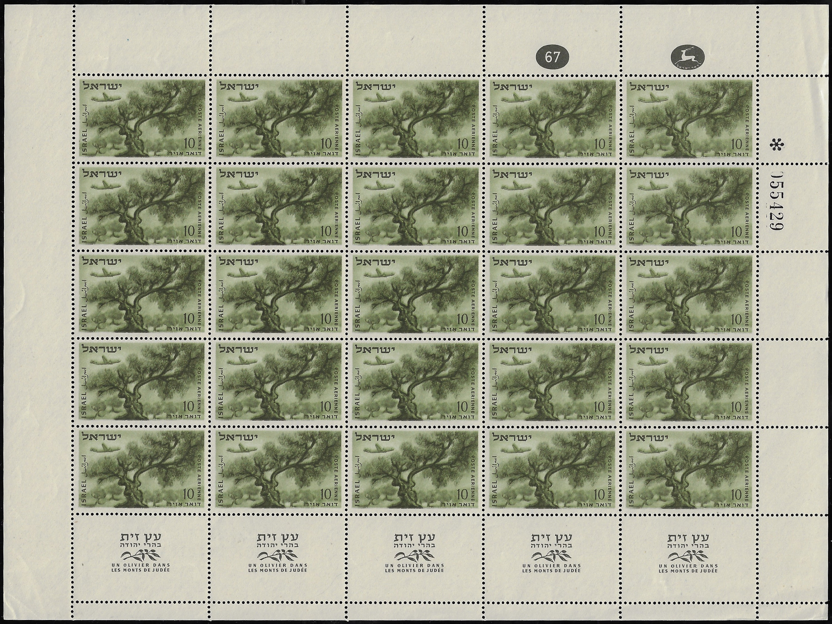 02.03.1954 - דואר אוויר - עץ זית [ג:00.0, ר:00.0] (רגיל)