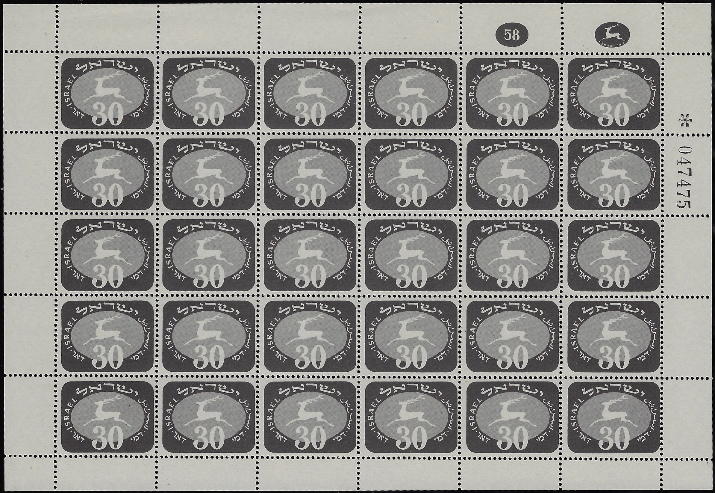 30.11.1952 - דמי דואר 30 פרוטה [ג:00.0, ר:00.0] (רגיל)