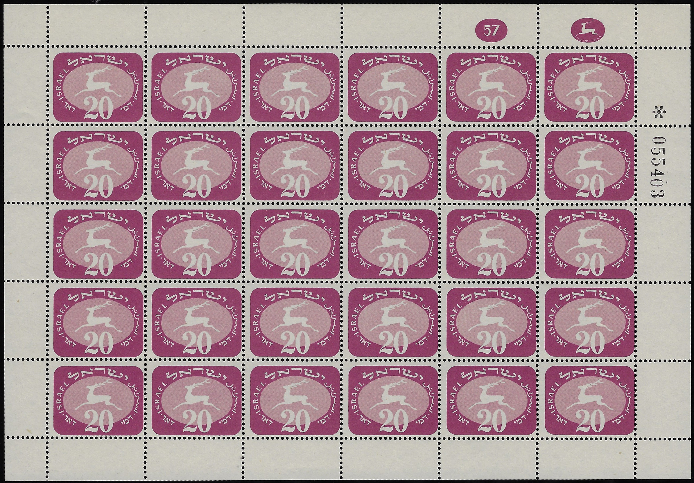 30.11.1952 - דמי דואר 20 פרוטה [ג:00.0, ר:00.0] (רגיל)