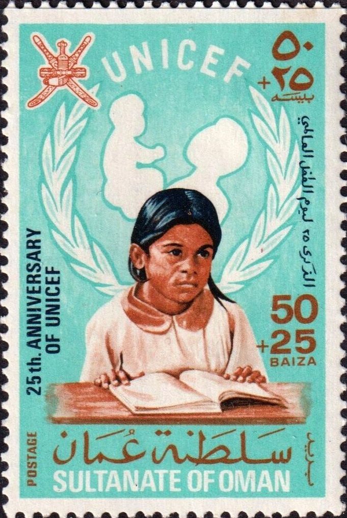ב-25 בדצמבר 1971 הנפיק דואר סולטנות עומאן את בול הצדקה הראשון שלו. ההכנסות ממכירת הבול הועברו לקרן יוניסף של האו"ם.