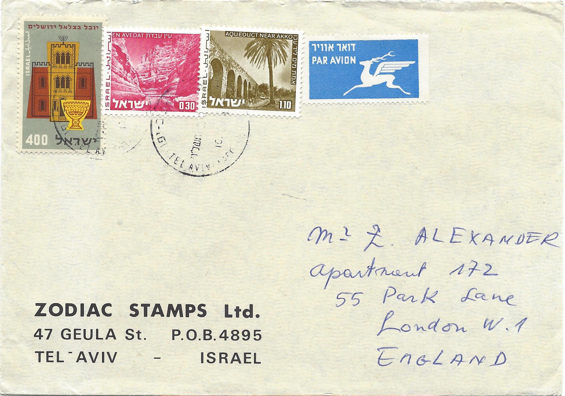 לעיתים, זוכה האספן ופריטים מעניינים הקשורים לתולדות הדואר נוחתים על סף דלתו מבלי שיצטרך להתאמץ ולחפש אחריהם. המעטפה המודרנית שנשלחה בשנת 1978 מישראל אל ביתו של צבי אלכסנדר בלונדון מהווה דוגמה טובה לדרך בה ניסו שולחי המכתבים לאורך כל ההיסטוריה להערים על שלטונות הדואר ולהימנע מתשלום מלוא מחיר המשלוח שנדרש מהם.
