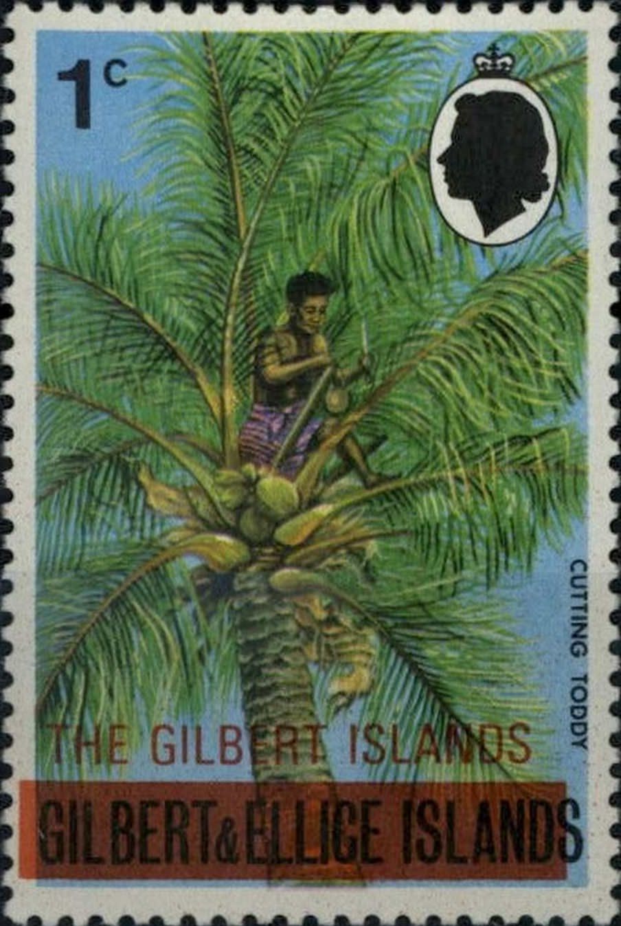 ב-2 בינואר 1976 הנפיק דואר איי גילברט את הבולים הראשונים שלו כיישות נפרדת מאיי אליס. הבולים הונפקו על ידי הוספת הדפס רכב על בולי המושבה "איי גילברט ואליס".