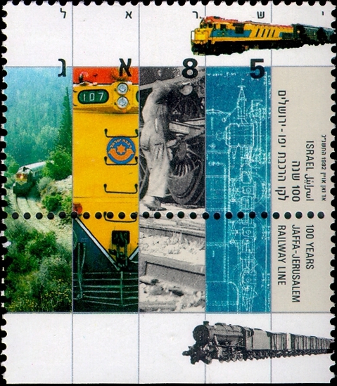 לציון מלאת 100 שנים לקו הרכבת יפו-ירושלים, הנפיק דואר ישראל בשנת 1992 ארבעה בולים וגיליונית זיכרון. מעצב הבול, אד ואן-אויין, בחר לעצב את הפריטים בסגנון חדשני שאפשר לו לשלב בהם מידע רב, אולם נתקל בתגובות שליליות וכעוסות מצד אספני הבולים.