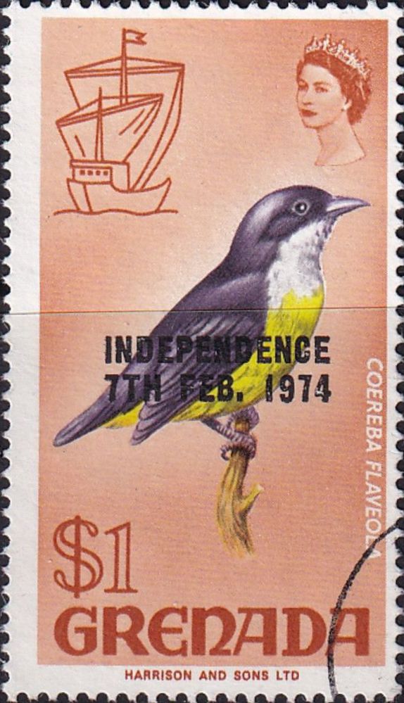 ב-7 בפברואר 1974 ציין דואר האי גרנדה את קבלת העצמאות על ידי הוספת הדפס רכב מתאים לבולים הקיימים.