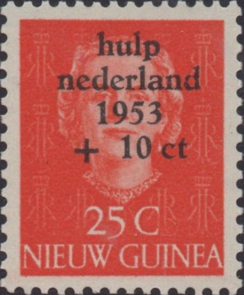 ב-9 בפברואר 1953 הנפיק דואר גינאה החדשה ההולנדית את בולי הצדקה הראשונים שלו. ההכנסות ממכירת הבולים נועדו לתמונך בנפגעי ההצפות בהולנד.