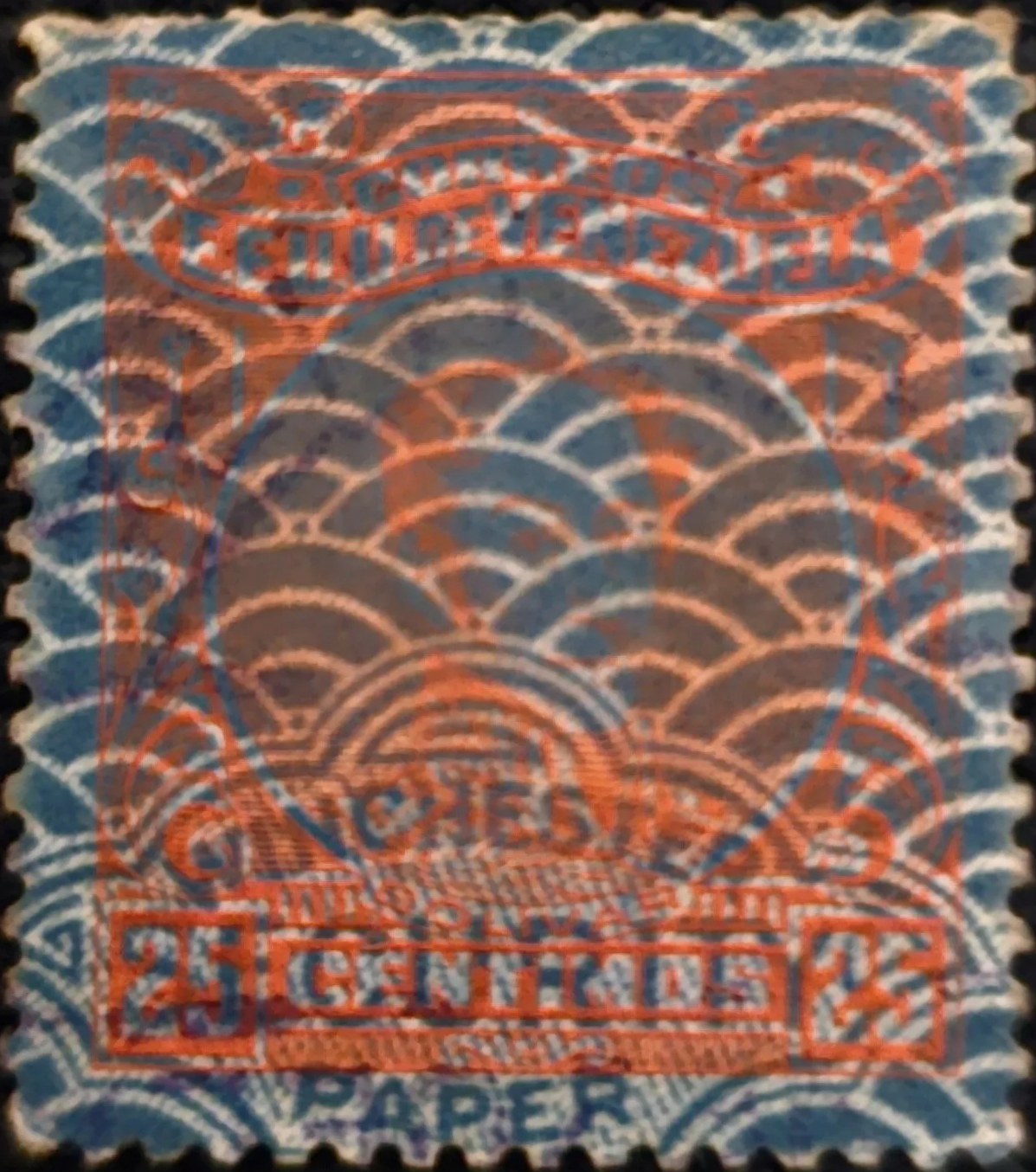 נייר ביטחון עם הדפסת רקע שנועדה להקשות על זייפני בולים. נייר זה שימש את ונצואלה להדפסת בולים בשנת 1932. בעיות בבקרת האיכות של ייצור הנייר גרמו למצבים רבים בהם הדפסת הרקע הייתה כהה מידי, והאפילה על הבול שהודפס על הנייר.