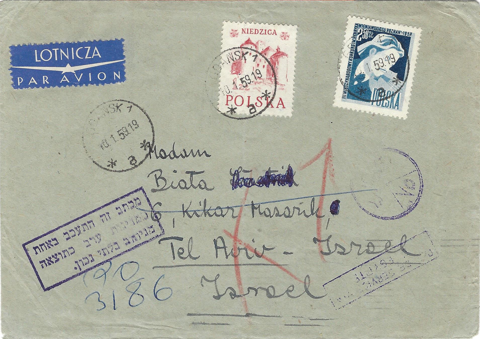 ב-10 בינואר 1959 נשלח מן העיר גדנסק שבפולין מכתב שנועד לישראל, אולם נותב בטעות למצרים. הטיפול המצרי במכתב שנועד למדינת אויב פותח צוהר לדרך בה השפיעו היחסים העכורים בין ישראל ושכנותיה על תעבורת דברי הדואר במזרח התיכון.