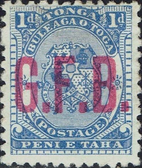 On February 13, 1893, Tonga Post issued its first official stamps. The stamps were stamped with an overprint in the form of .GFB, the initials of the words Gaue Faka Buleaga, which means "in the service of the government".