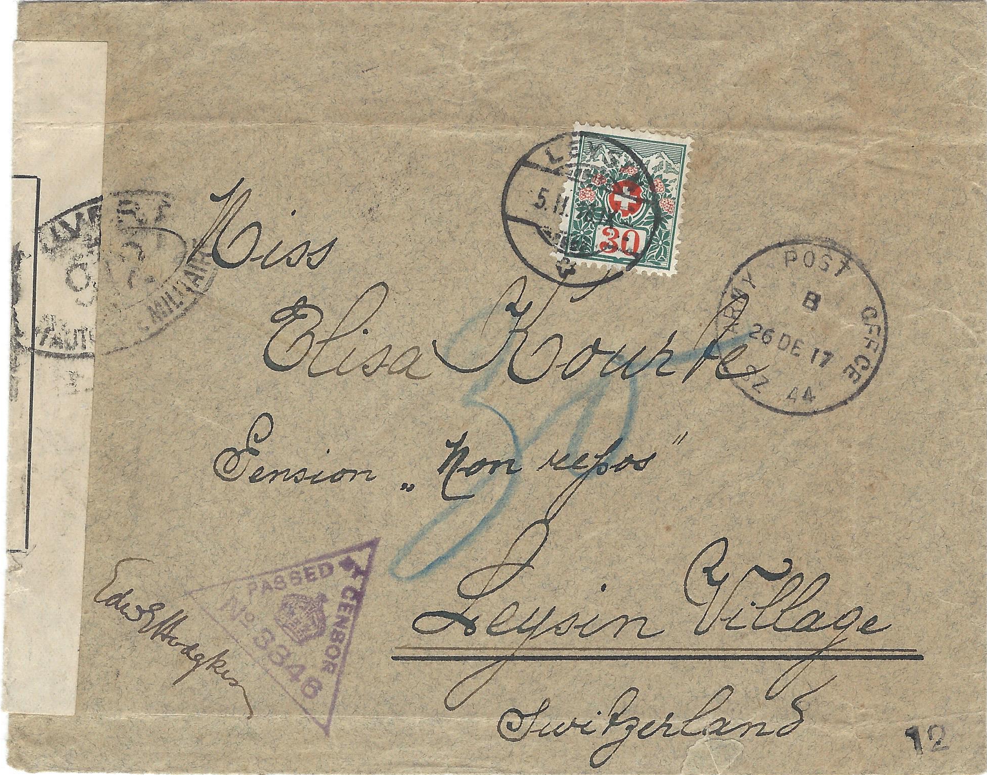 A few days after the occupation of Jerusalem by British military forces, the opportunity arose for the residents of the city to return and send letters to their relatives in Europe. The British military authorities allowed civilians to use the military postal services and send letters for free until the civilian postal systems were organized. An envelope preserved in the Alexander collection indicates that the information about the generous arrangement was not properly published among the postal services in Europe, which led to the imposition of fines without taking into account the special situation that prevailed in the Land of Israel.