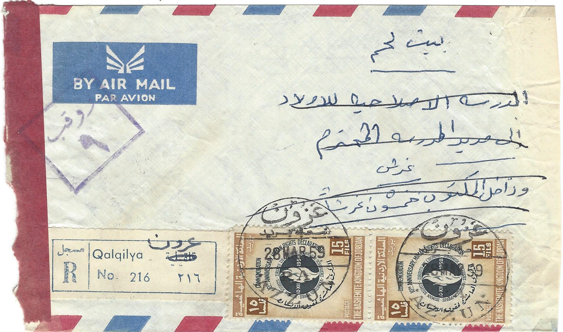 An envelope kept in the Alexander collection sheds light on the development of postal services in the West Bank of the Kingdom of Jordan in the late 1950s. In addition, we can learn from the way the Jordanian security services handled the envelope about the tense relations with the State of Israel across the border.